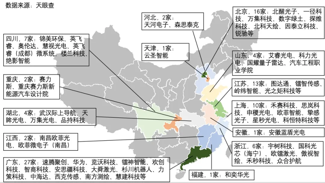 圖1 國內(nèi)主要省市激光雷達企業(yè)情況