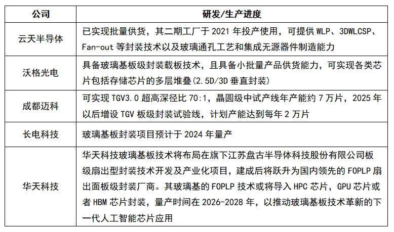 表2 國內廠商玻璃基板封裝業(yè)務布局