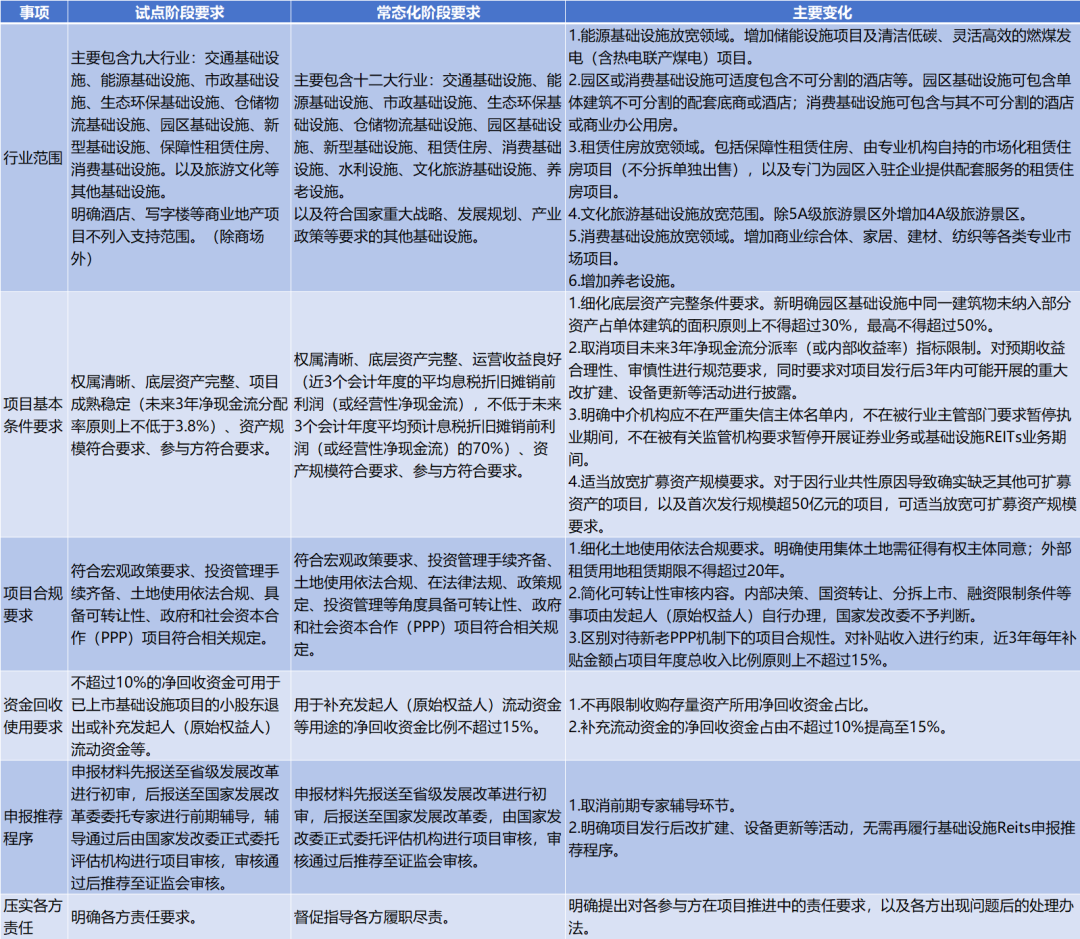 表2 基礎(chǔ)設(shè)施領(lǐng)域不動(dòng)產(chǎn)投資信托基金(REITs)項(xiàng)目申報(bào)要求變化對(duì)比表