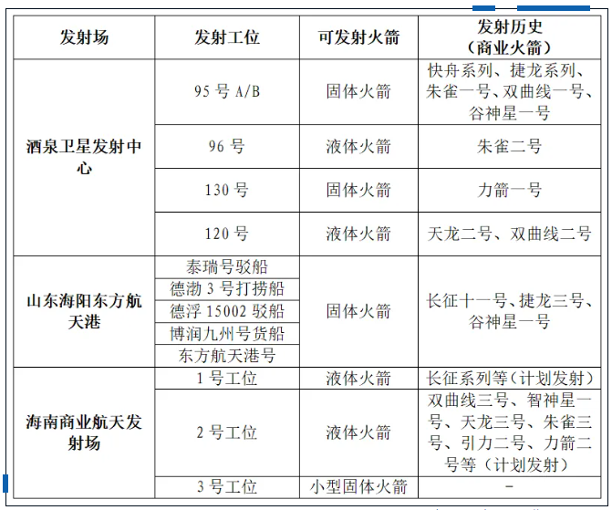 表1 商業(yè)火箭主要發(fā)射場發(fā)射情況
