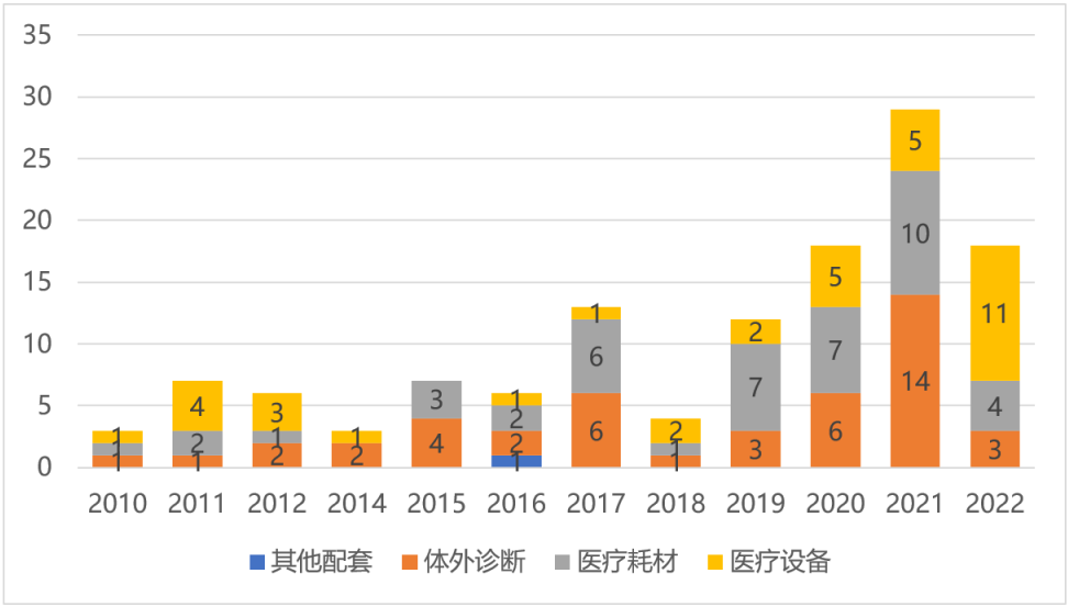圖1 中國A股醫療器械細分領域上市企業數量(截至2022年12月)