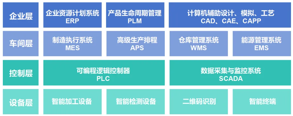 醫藥企業數字化車間頂層設計架構當前主要包含設備層、控制層、車間層和企業層四層,旨在通過智能制造關鍵技術創新和智能化信息系統集成創新,實現車間的數字化、智能化升級。
